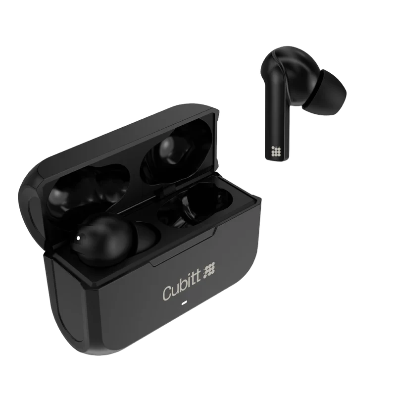 Descubre un sonido impecable y un estilo chic con los wireless earbuds Cubitt, diseñados para el oyente exigente. El Bluetooth 5.0 avanzado garantiza melodías ininterrumpidas, claridad inigualable con Sonido HD en un ajuste ergonómico para un deleite auditivo puro, reproducción prolongada de hasta 30 horas de audio con capacidades de recarga rápida, emparejamiento instantáneo al conectarte sin esfuerzo con «CT-Earbuds» y un diseño resistente con clasificación IPX5 para manejar salpicaduras inesperadas.