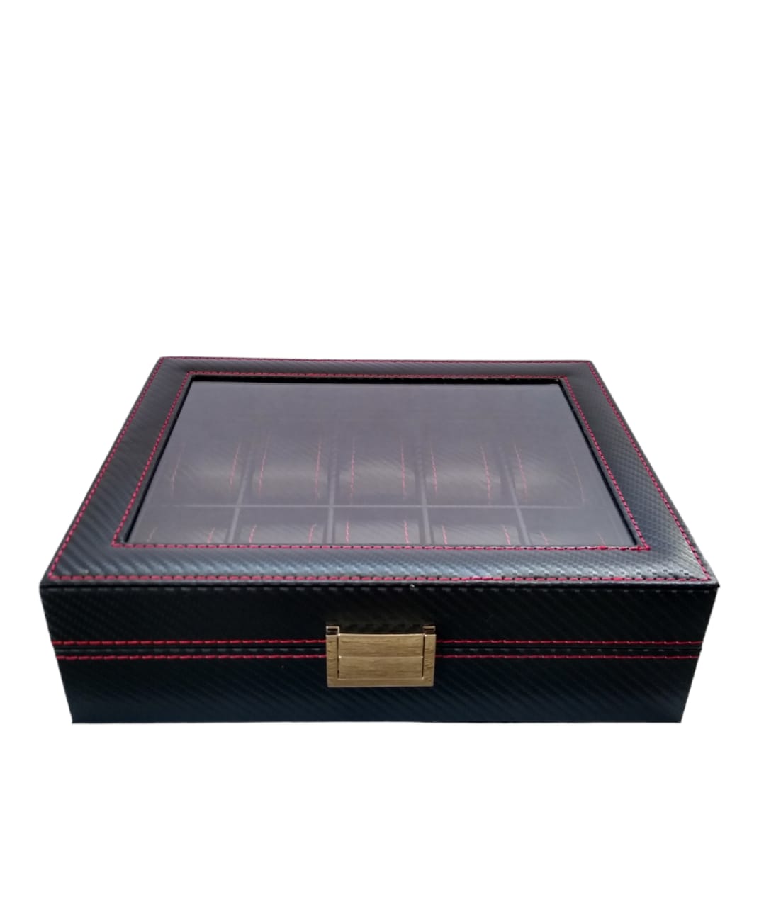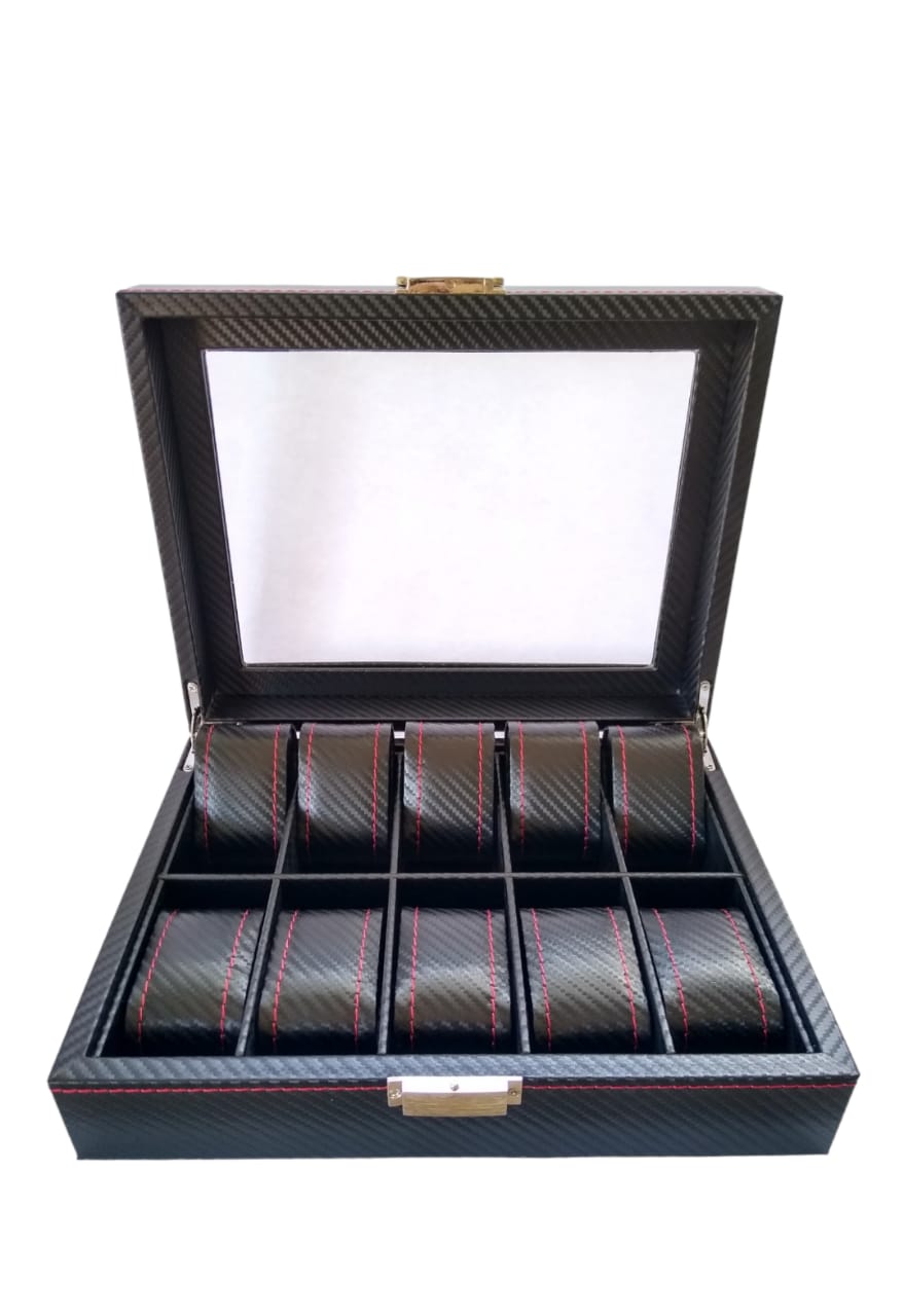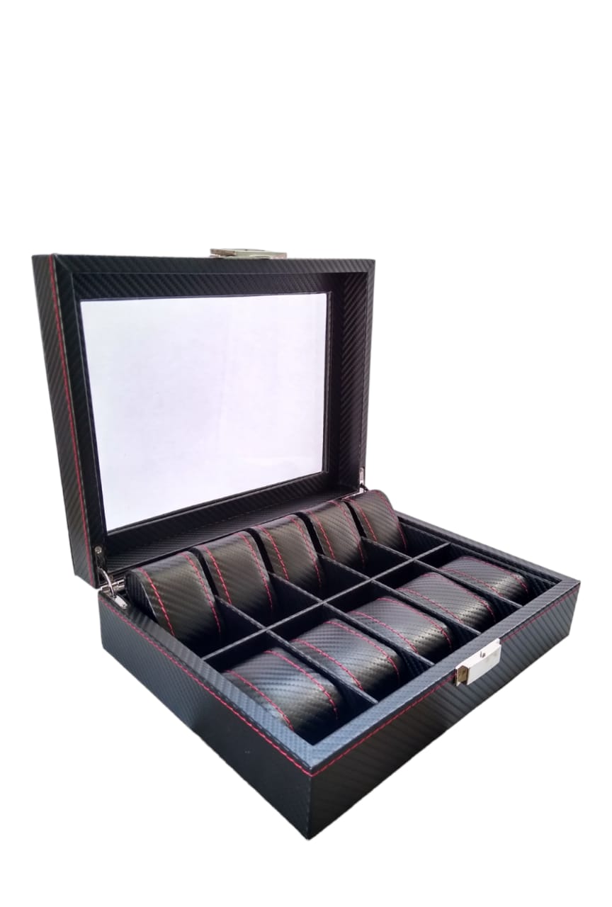 Caja Organizadora para Guardar Relojes, 10 espacios, Acabado Tipo Fibra de Carbono