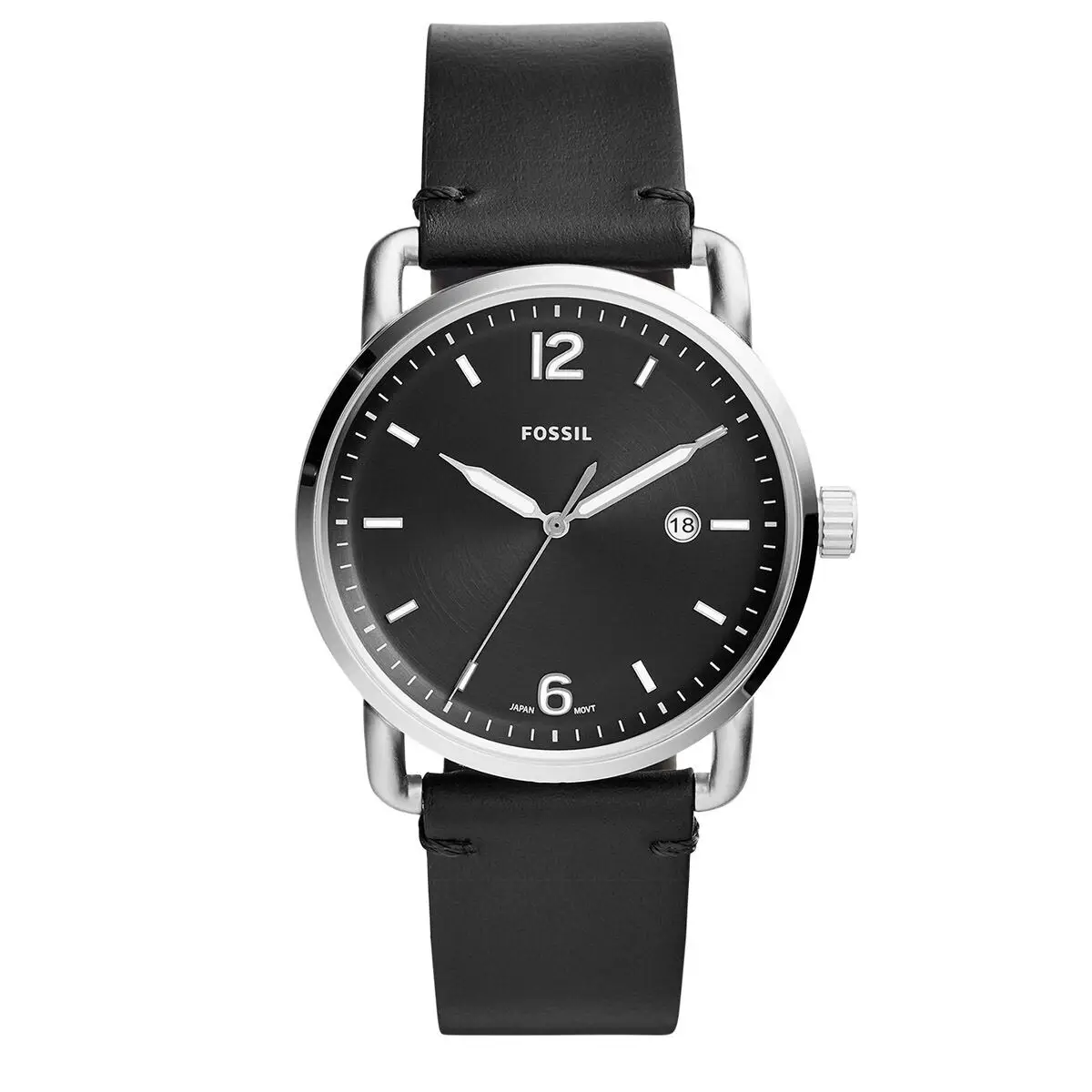 FOSSIL COMMUTER BLACK LEATHER STRAP WATCH FOR MEN
