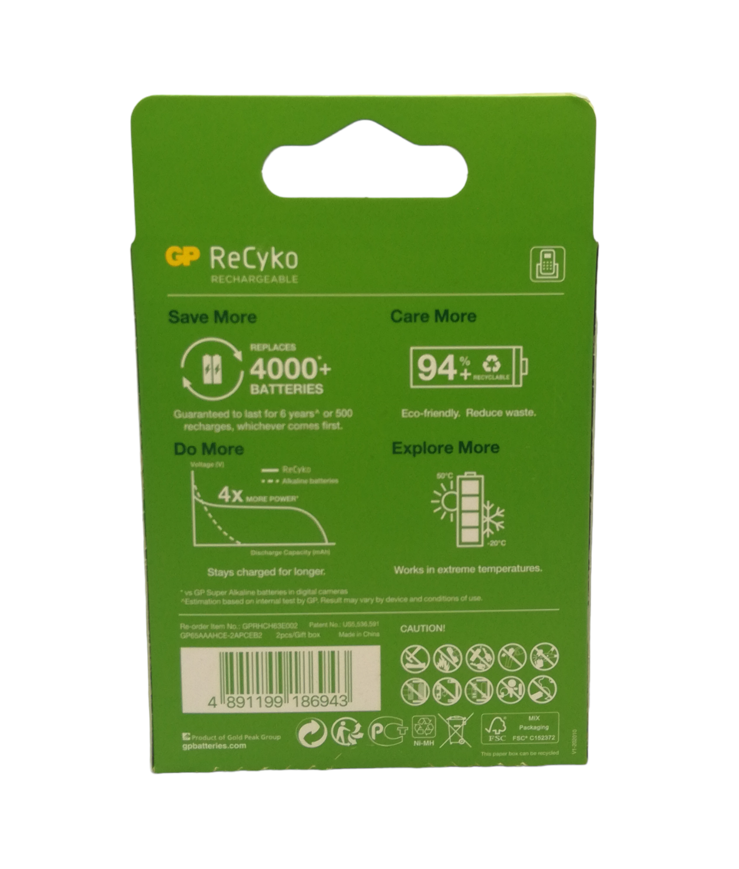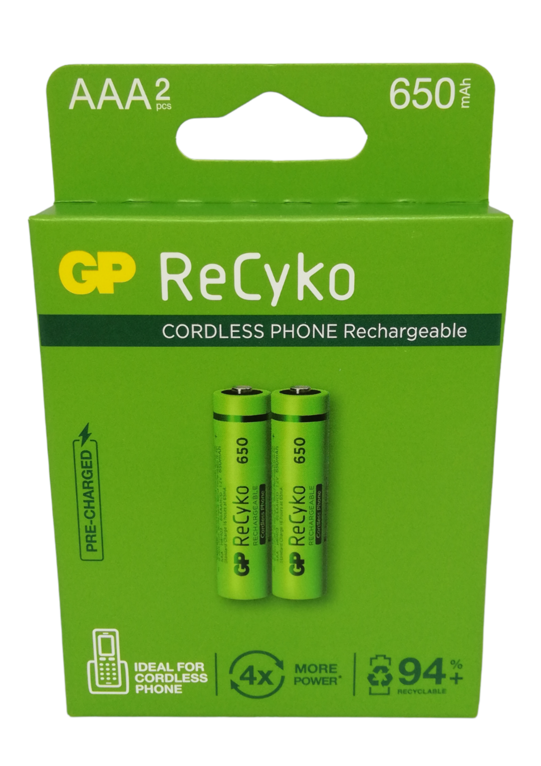 GP RECYKO BATTERIES AAA 650MAH 2PCS. GP65AAA-2APCEB2