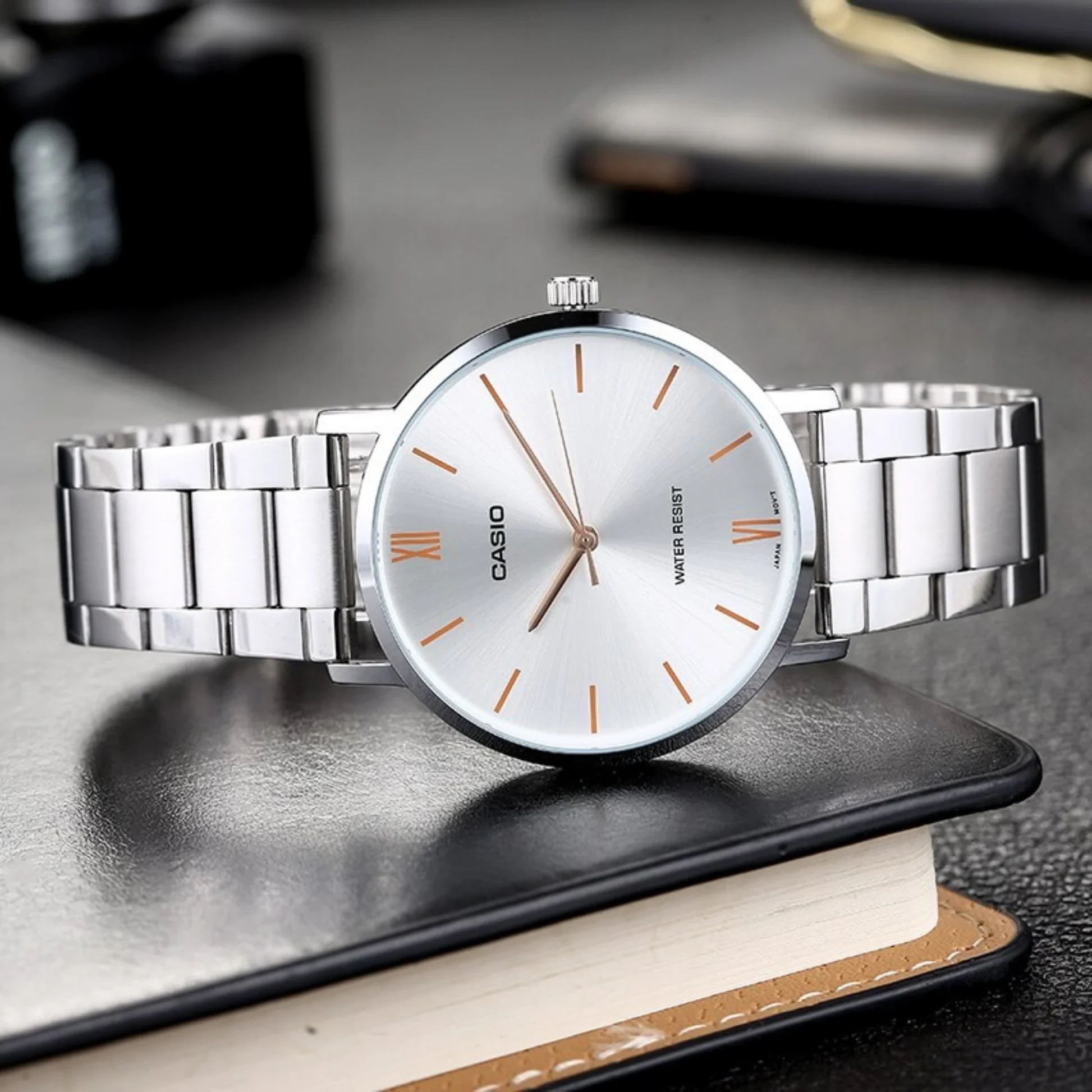Reloj Casio de caballero resistente al agua con correa de acero inoxidable y pantalla de fácil lectura.