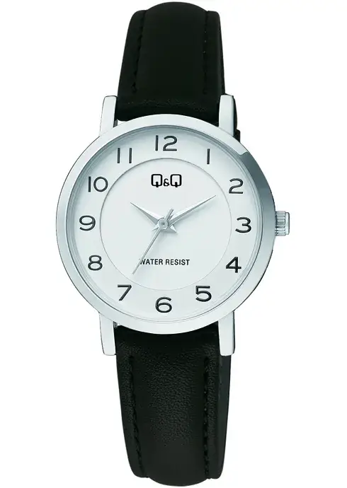 Reloj de Dama Q&Q, pulsera de cuero sintetico, resistencia al agua 3 ATM
