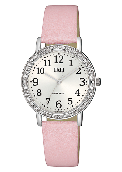 Reloj de dama Q&Q, pulsera de cuero, resistencia al agua 3 ATM